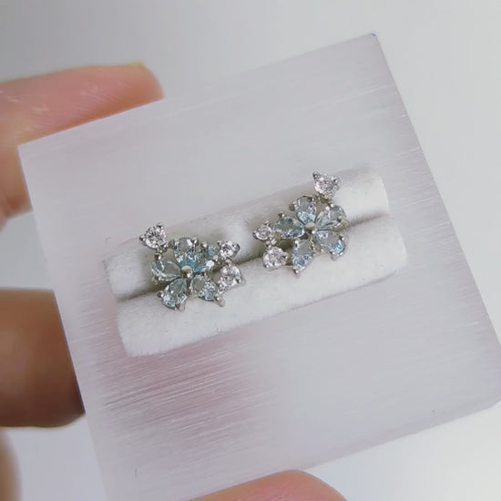 Aqua Bloom | Aquamarine Floral Stud Earrings