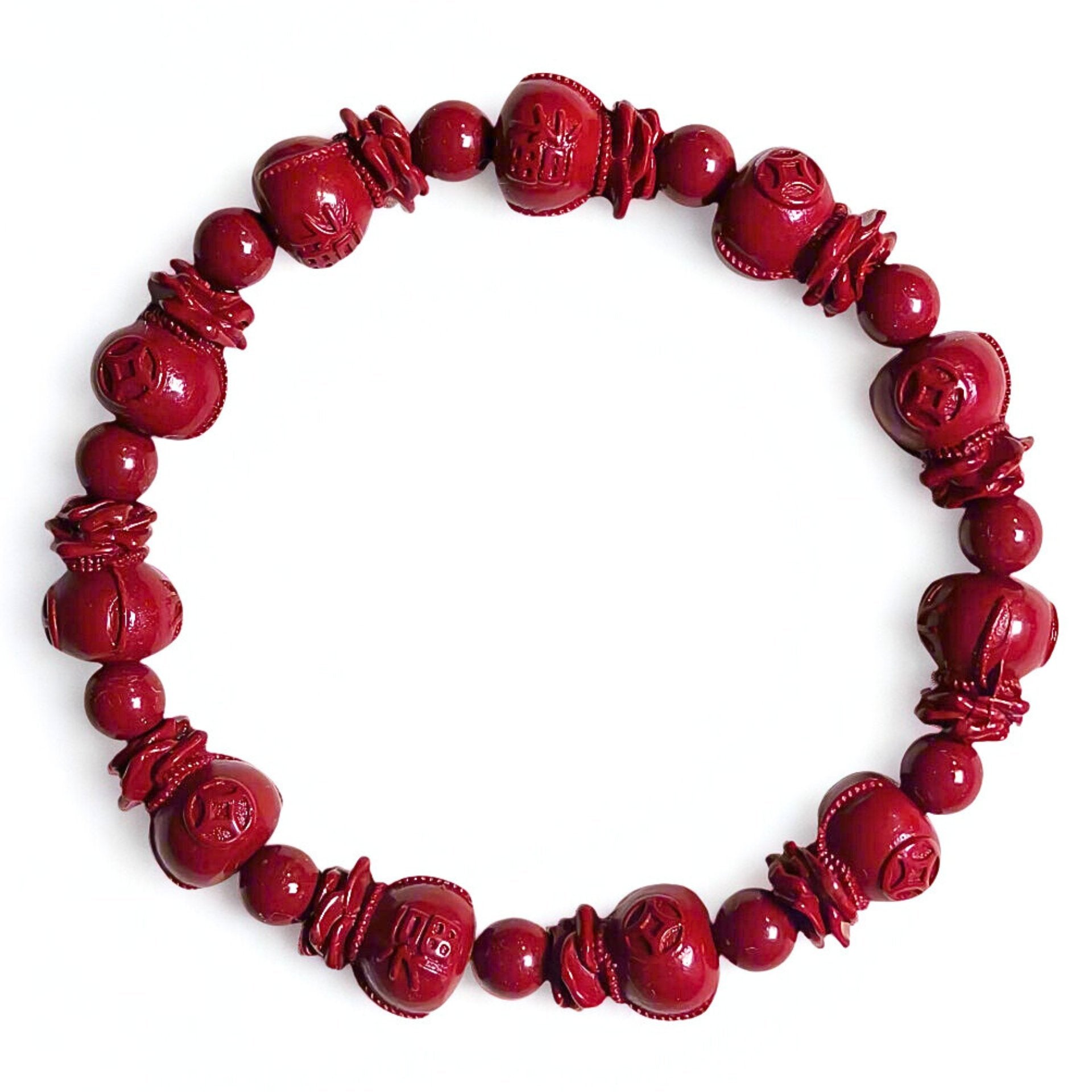 Fortune Bloom | Cinnabar Beaded Bracelet, 10mm, Money Bag Design