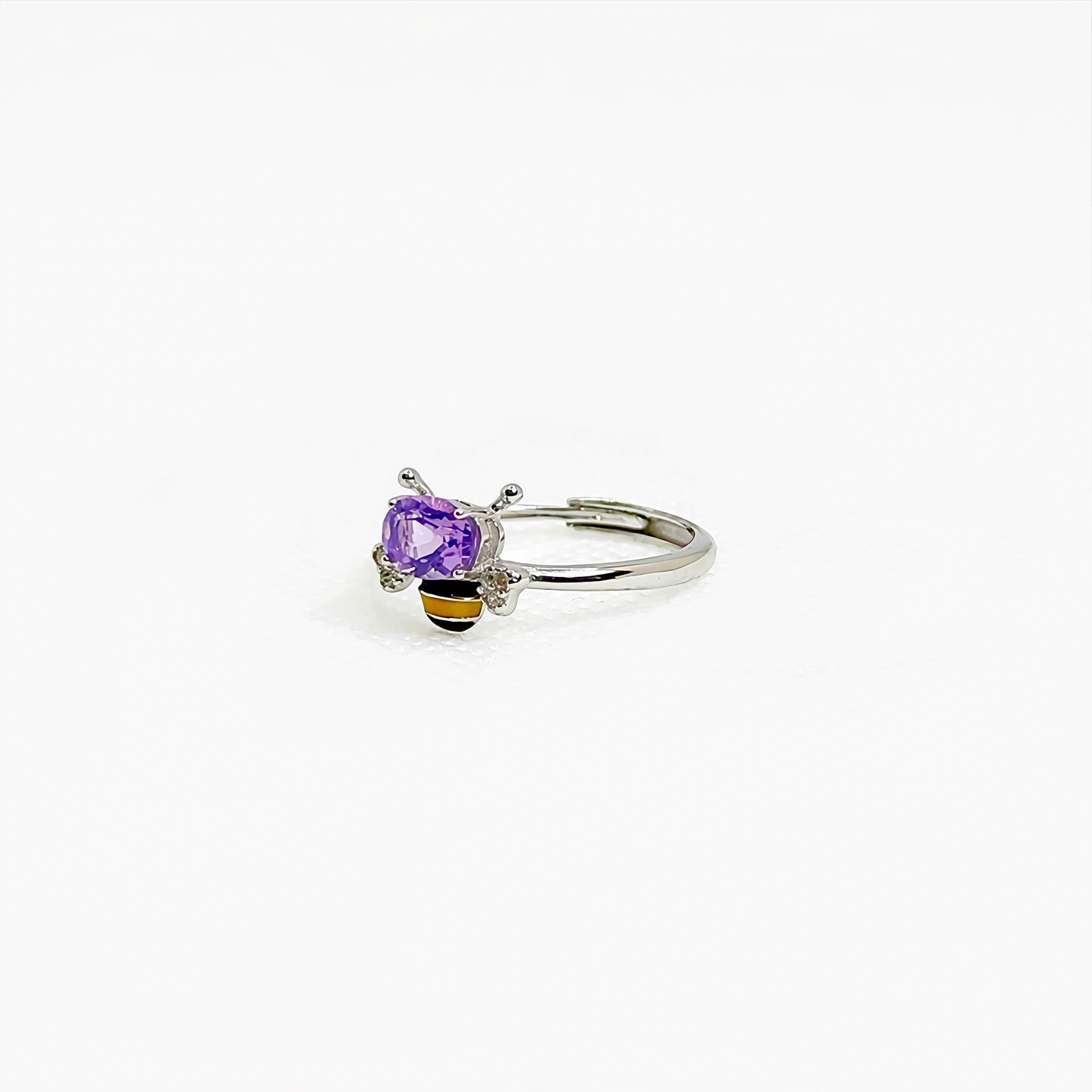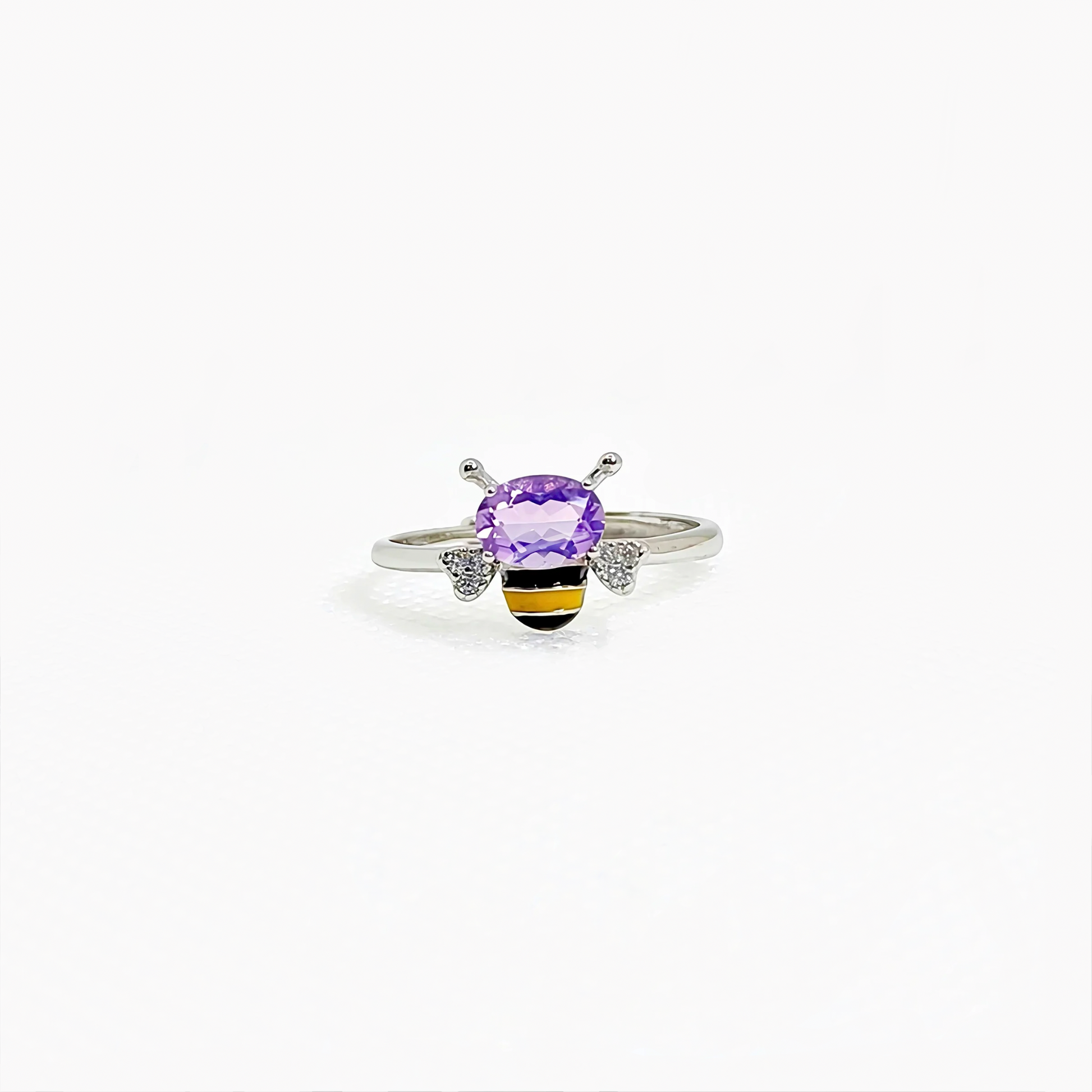 The Honeylight Amethyst Bee Ring blends calm strength with natural elegance. Featuring a rich violet amethyst and a delicately detailed bee, this ring represents balance, protection, and mindful growth.