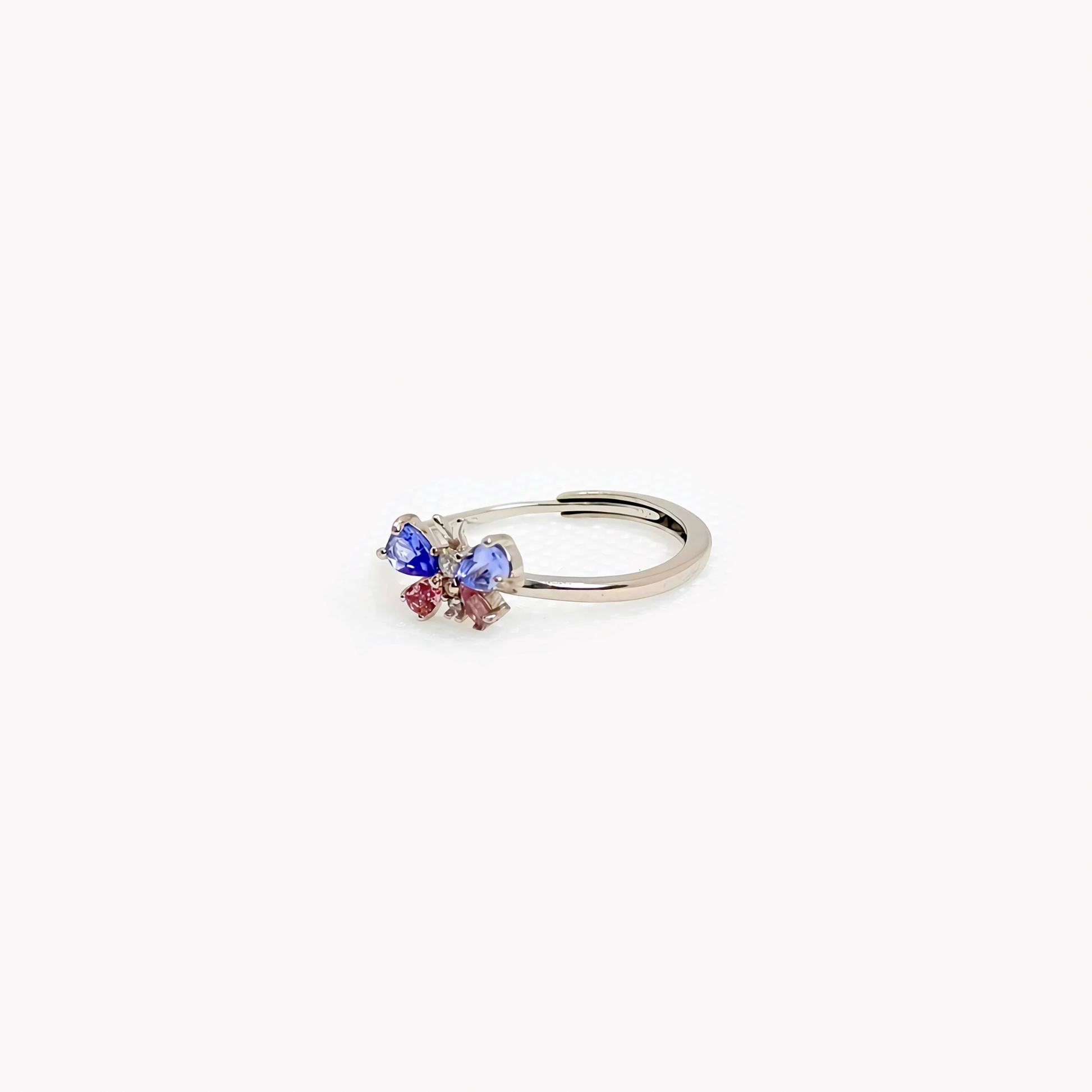 The Wingveil Duet Butterfly Ring celebrates balance and connection. Two luminous tanzanite stones form a butterfly in quiet symmetry, their violet-blue glow accented by delicate zircon that catches the light with every movement.